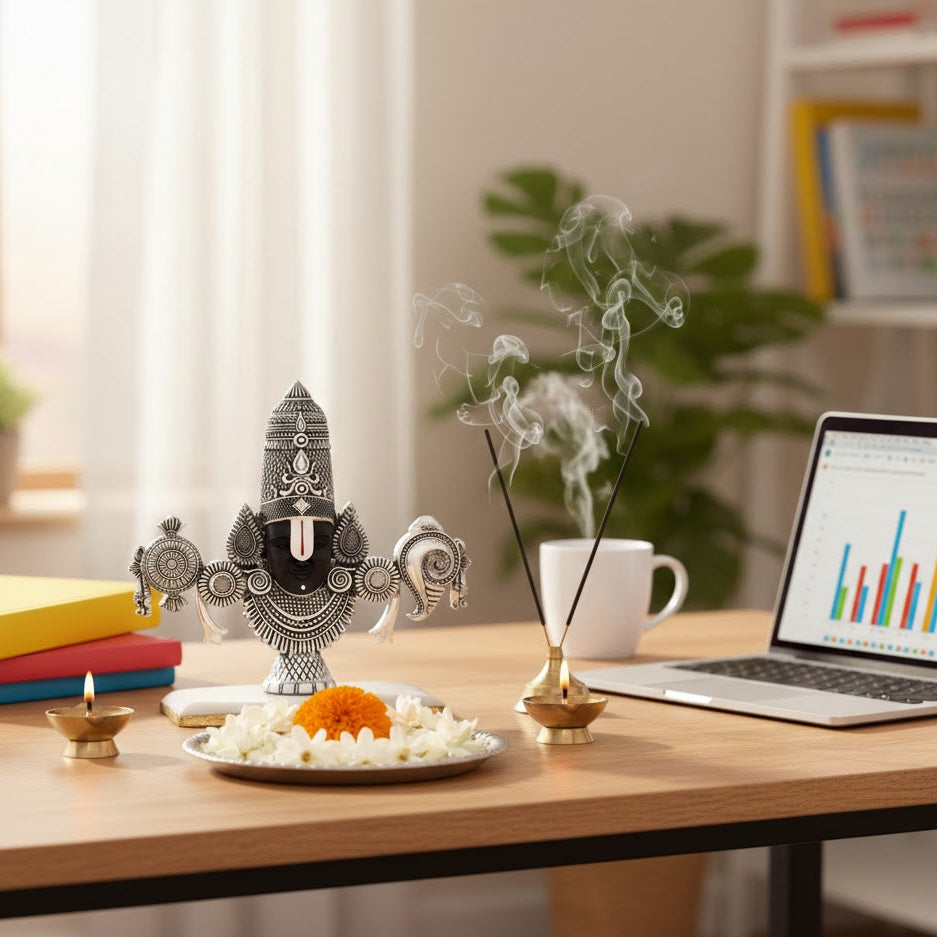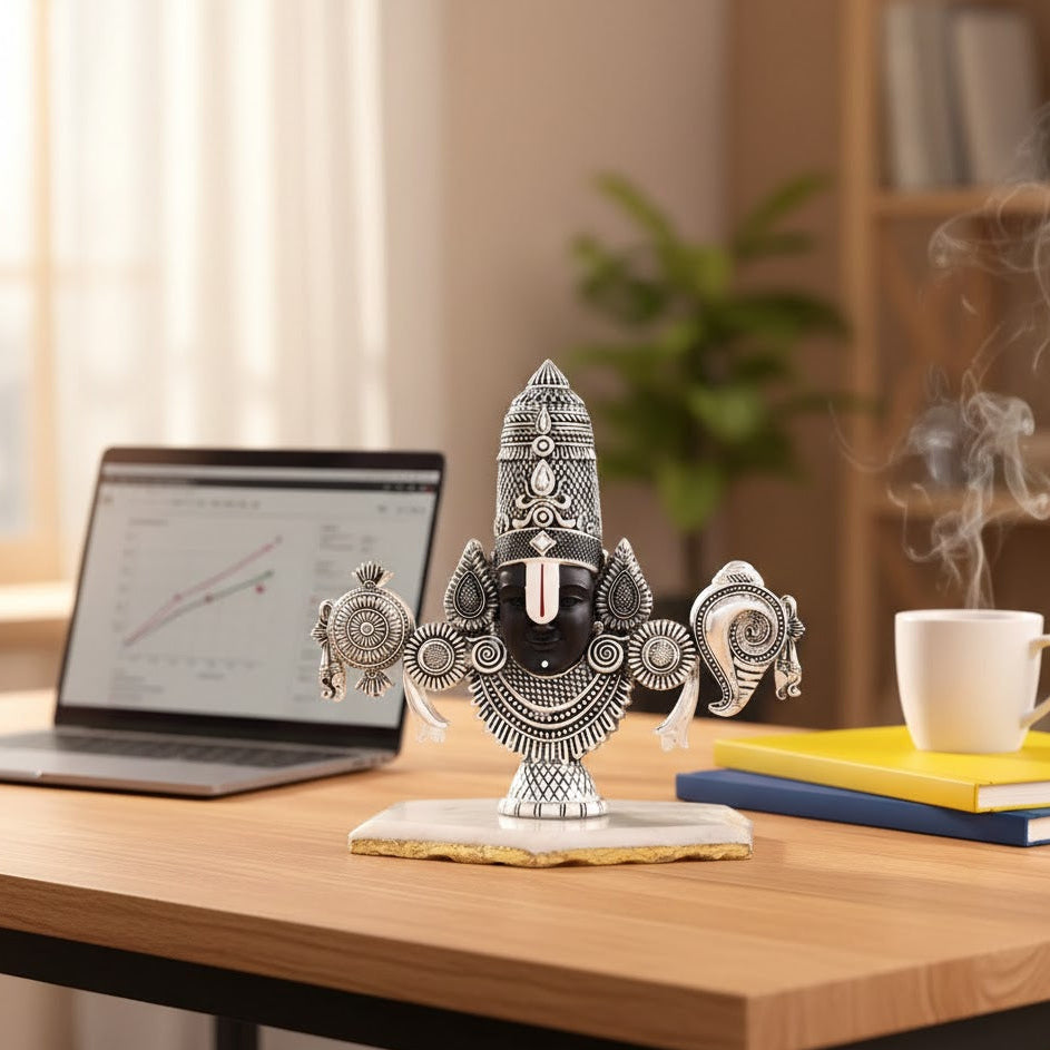 Bring home peace and blessings with this beautifully crafted Balaji Silver Plated Face Idol (7 inch). Made with premium silver plated finish and fine detailing, this idol adds a calm and divine touch to your pooja room, office, or living space. Ideal for daily worship, festive décor, and spiritual gifting.