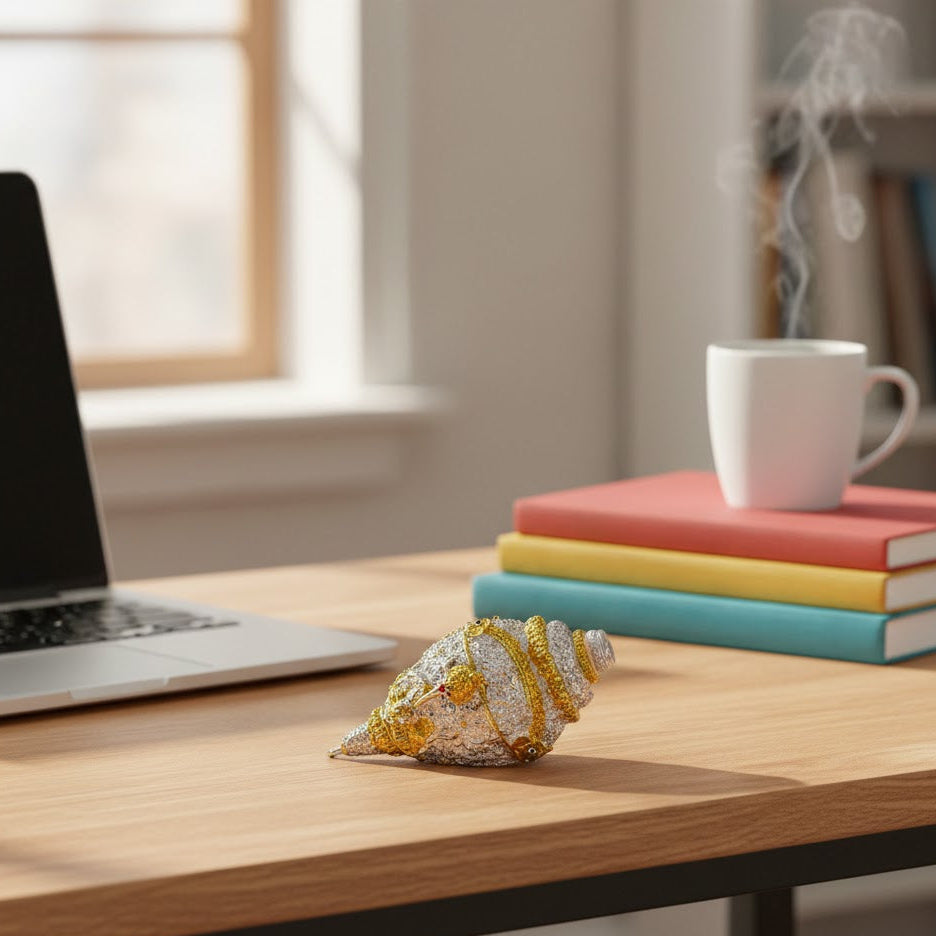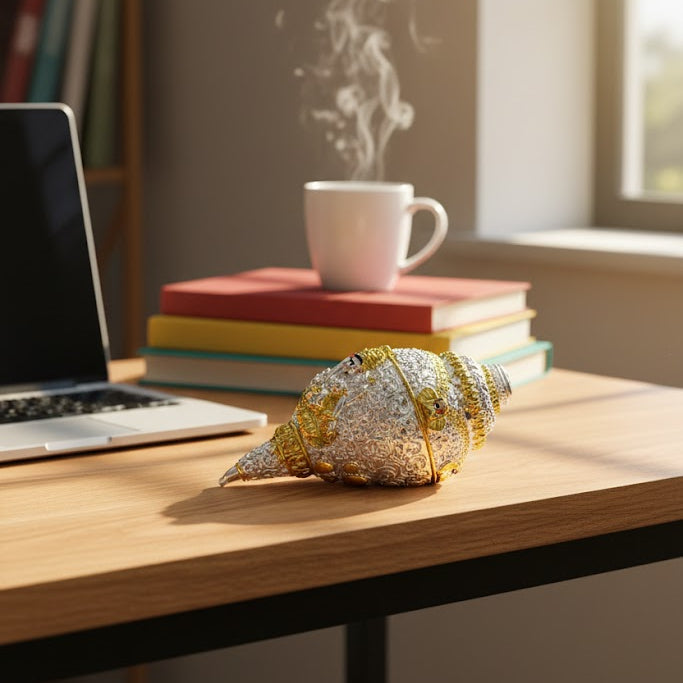 Metal Ganesha Shankh | Decorative Conch For Pooja, Home & Temple