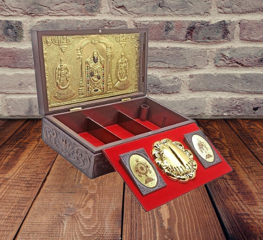 Gold Plated Shri Tirupati Balaji Lakshmi Padmavati Pocket Temple With Dry Fruit Box