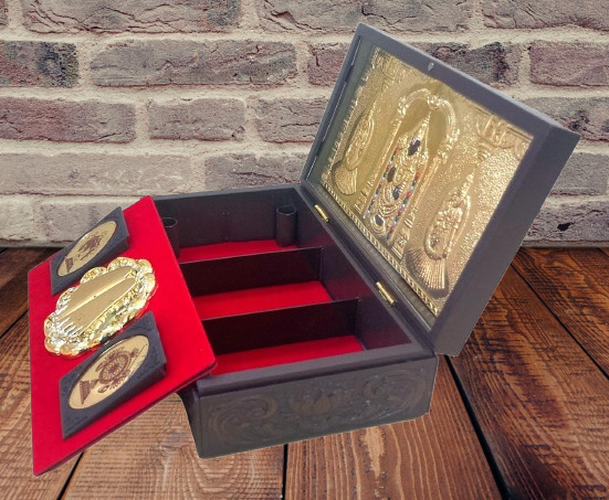 Crafted to be compact and travel-friendly, this portable temple allows devotees to carry the blessings of Tirumala wherever they go. Paired with a luxurious dry fruit box, it becomes the perfect gift of prosperity, good fortune, and health — ideal for Diwali, weddings, housewarmings, or corporate gifting.