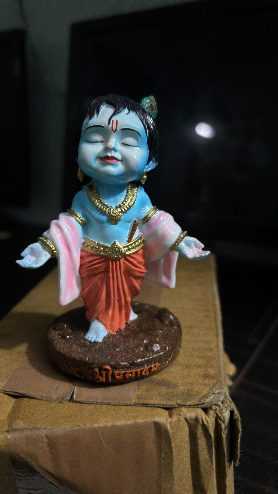 Bring divine love and positivity to your car with the Bal Gopal Murti for Car Dashboard (Blue). This beautifully crafted idol of young Lord Krishna in blue symbolizes joy, peace, and spiritual protection on every journey.