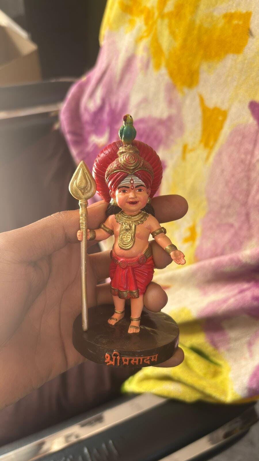 Design Features: Depicts Bal Kartikeya with a radiant expression, traditional ornaments, vibrant red attire, and a majestic peacock atop his head