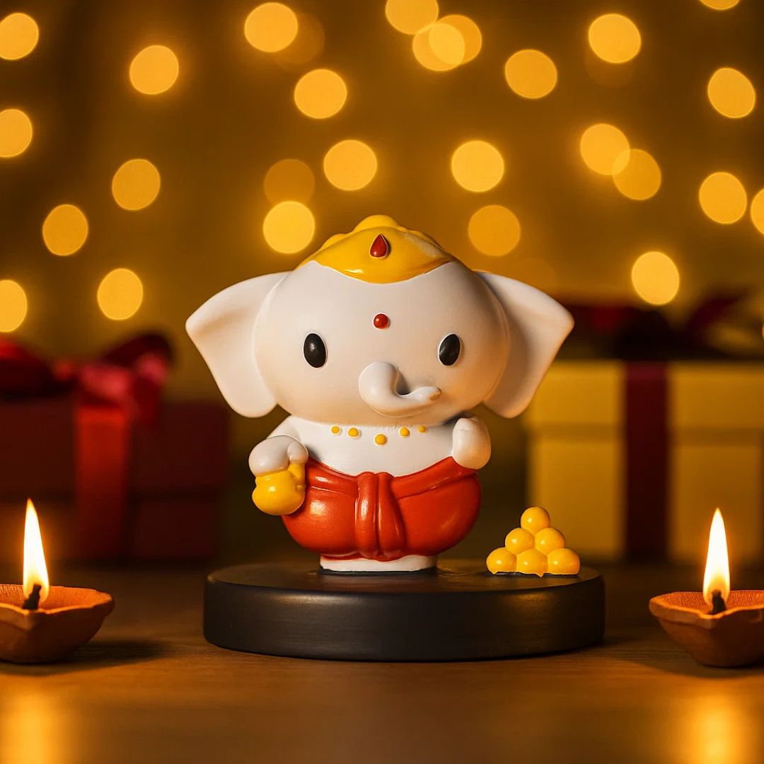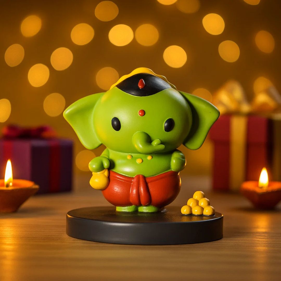 - Design: Adorable Baby Ganesha holding Modak with vibrant attire