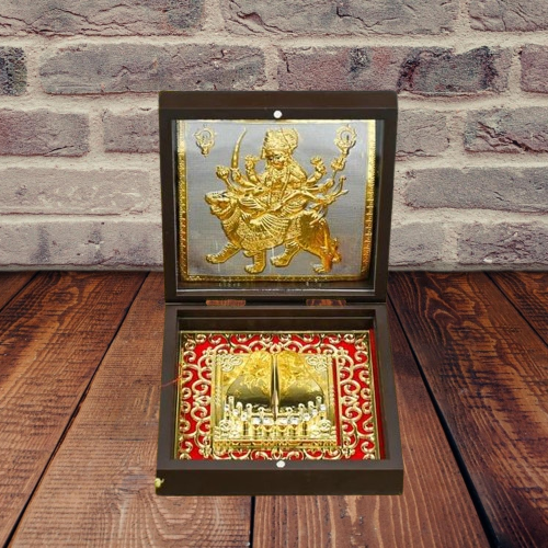 Bring the divine presence of Maa Durga with you wherever you go with this beautifully crafted Charan Paduka Pocket Temple. Symbolizing the sacred feet of Goddess Durga, this compact and portable shrine is perfect for daily worship, travel, or as a thoughtful spiritual gift.