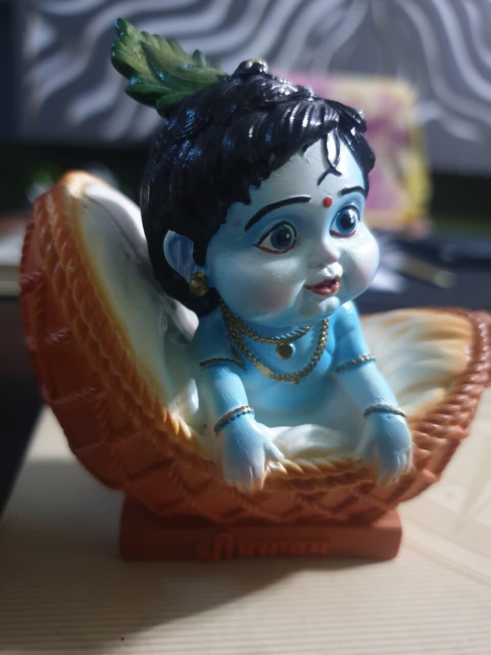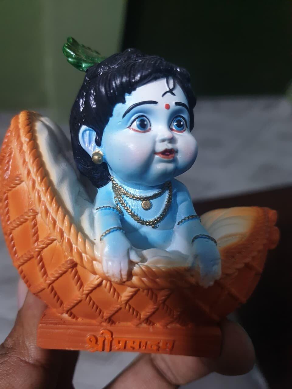 - Design Features: Intricately designed idol depicting Bal Krishna as the adorable Makhan Chor, capturing the playful innocence and divine energy of Lord Krishna in his infant form