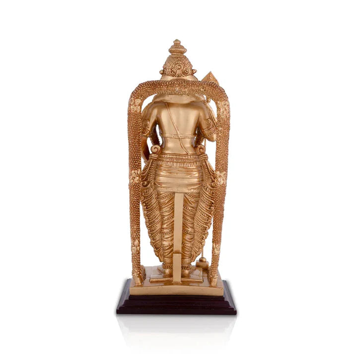- He stands in a poised and calm posture, representing divine strength and spiritual victory.