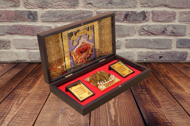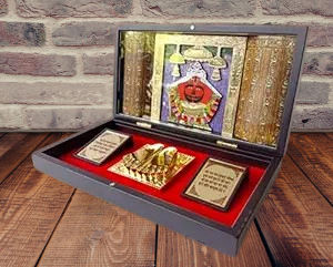 Carry divine blessings wherever you go with this beautifully crafted pocket temple dedicated to Lord Hanuman of Salasar Dham. Made with devotion and intricate detail, this miniature shrine is perfect for your home altar, travel bag, or workplace. It serves as a constant reminder of strength, protection, and unwavering faith. Ideal for gifting or personal devotion, invoke Lord Balaji's divine presence anytime, anywhere.