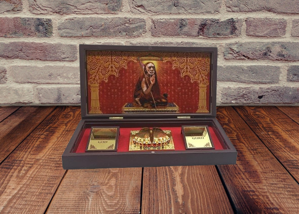 Perfect for daily darshan, travel, or your personal altar, this mini temple is a reminder of his blessings and teachings. Elegantly designed with traditional aesthetics, it carries the serene aura of Kanchi and keeps the guiding light of Sanatana Dharma close to your heart—wherever you go.