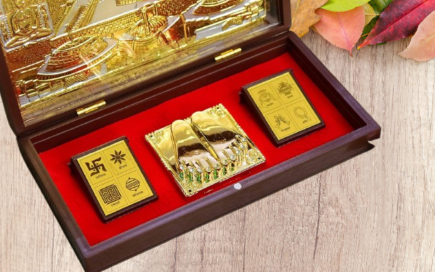 This compact pocket temple is exquisitely crafted and plated with a radiant finish, making it both a spiritual symbol and a piece of timeless artistry. The design captures the essence of Girnar Mahatirth, invoking a sense of serenity, devotion, and divine connection.